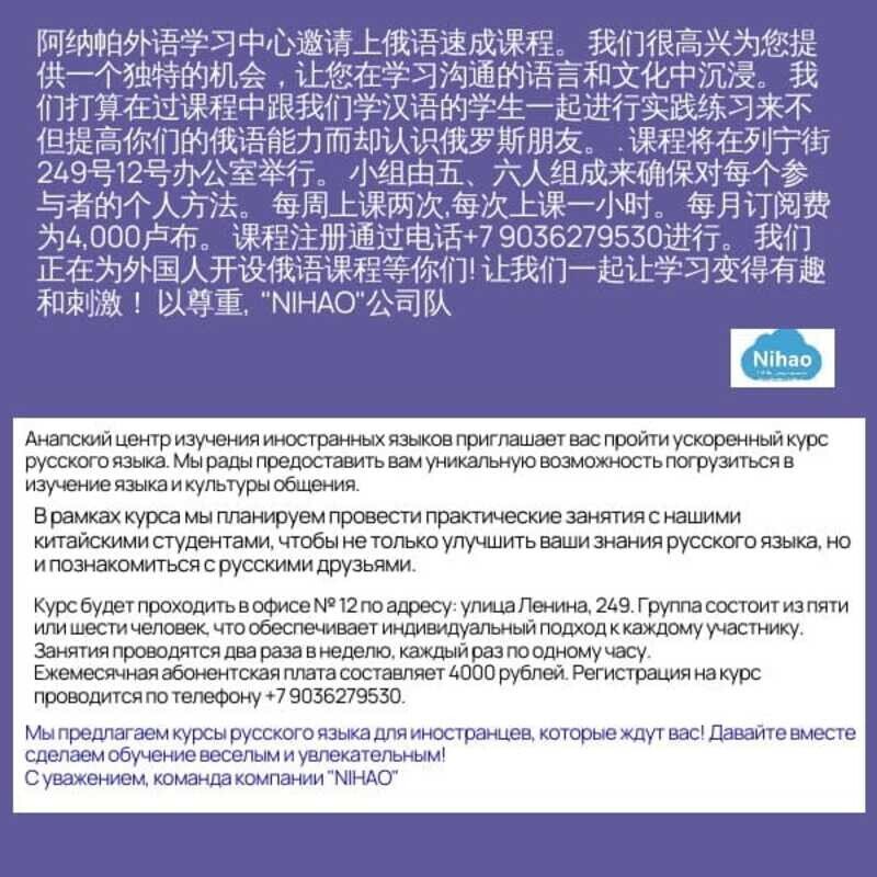 Центр изучения иностранных языков Nihao в Анапе